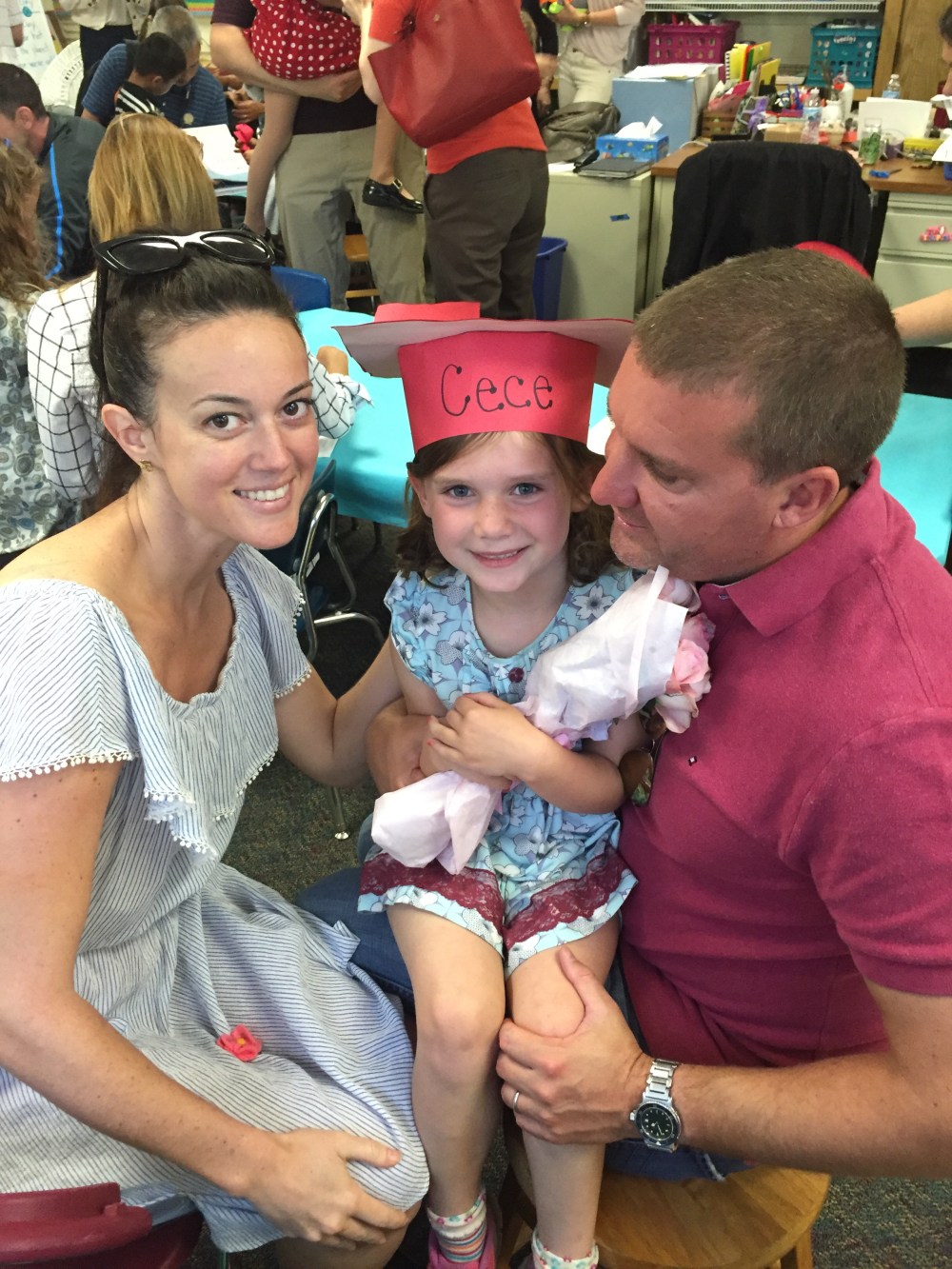 So, we also had Cecilia’s kindergarten graduation today. Here’s how that went: my sister washed my hair in the sink, I took 2 hydrocodone, put on a stretchy dress ’cause I can’t fit my arms through any kind of tight armhole, put on large sunglasses, walked out the door. Please note, I skipped looking in a mirror.