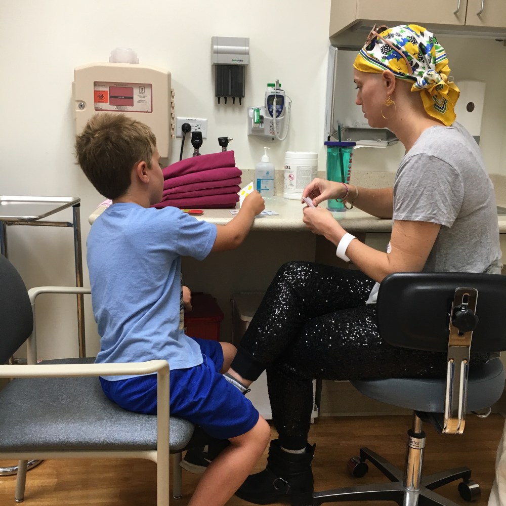 Chemo #2 is in the books. My oldest son wasn’t feeling well so instead of sending him to camp, we brought him to a place filled with germs and immunosuppressed people. Obvs. He is also old enough to be interested in what mom does at chemo so we figured why the heck not.
