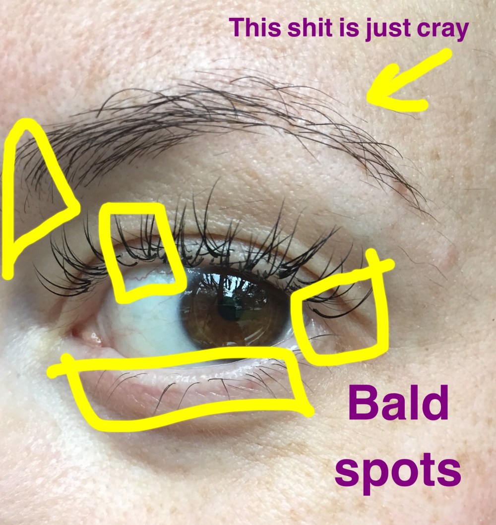 - I had my eyelash extensions placed today by my girl Anastasia, who had the tough job of breaking the news to me that I am indeed missing a bunch of eyelashes. She said I had bald spots where she just improvised and glued the eyelash directly to my lid. My eyebrows are also starting to defect, which I have known but am in denial about, so let’s just not talk about it, m’kay?