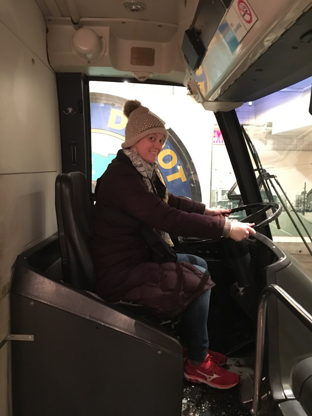While in the closed Transportation Museum, I obviously had to live my dream of driving an NYC public bus. Those giant flat steering wheels? Come on! Dreams do come true.
