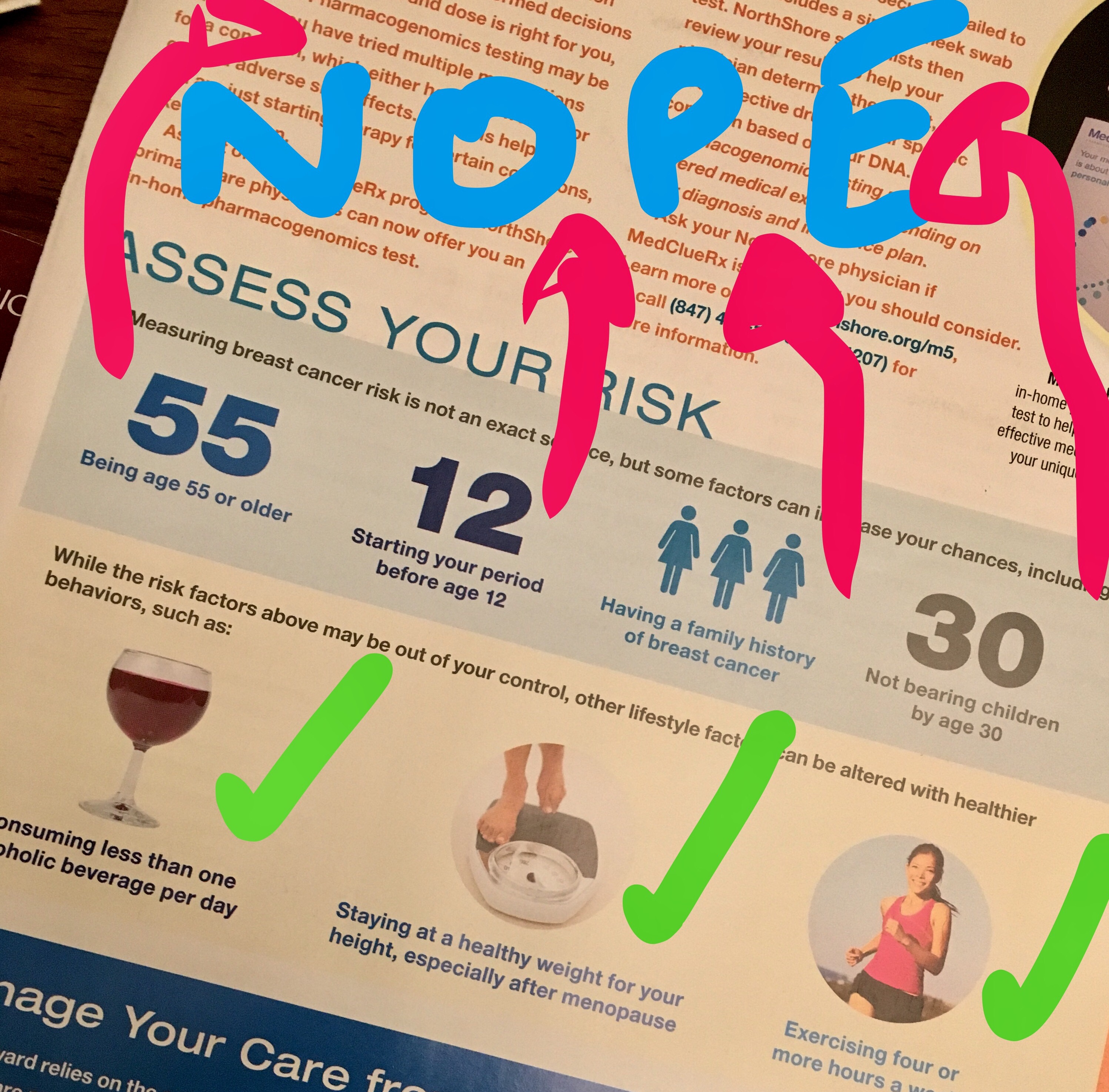 If I hadn’t discovered my cancer because I was randomly lactating (which ultimately had no correlation to my cancer- was just a VERY lucky coincidence) and read this diagram, I would think, ‘Well, phew! I am basically at a zero risk for breast cancer. Case closed on that one.’