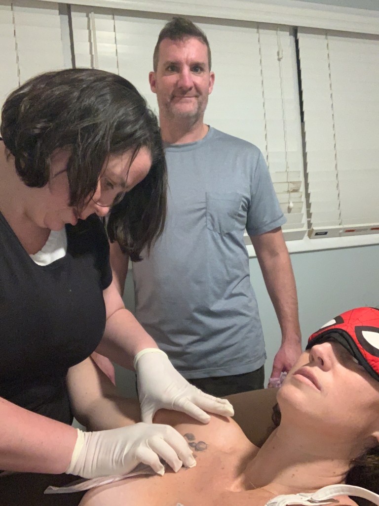 A friend who is a nurse was kind enough to come over 24 hours after getting home to change my bandages as they were, let’s say, not clean. Thank god for her. I took off my top and allowed my friend to teach Joe how to care for the wound. This disease forces you to be vulnerable and free of inhibition whether you like it or not. It was everyone’s first look at my breast without a nipple. Well not everyone, I couldn’t bear to look.