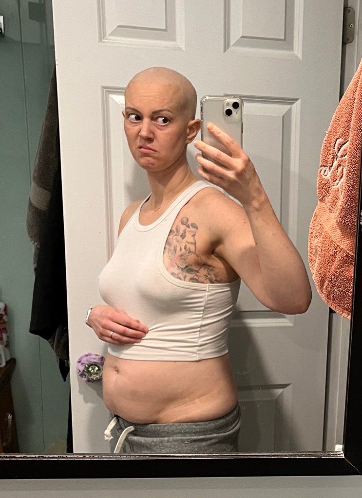 Should any of this matter considering I get the chance to be declared free of cancer (again)? No. Does it? You bet. It is about everything from pure vanity to control to the loss of earned vitality. All of it sucks. I want to be a positive role model who declares war on beauty standards, but instead, I am declaring a war on cancer for robbing me of control of my body.